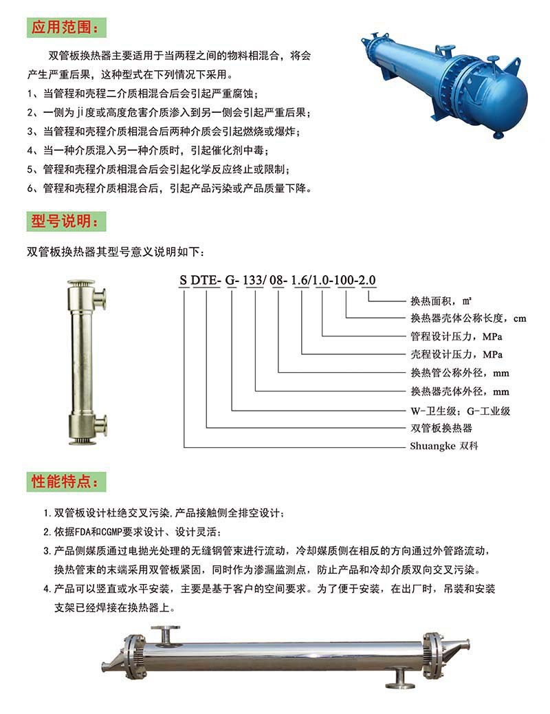 無(wú)菌級(jí)雙管板換熱器產(chǎn)品特點(diǎn):